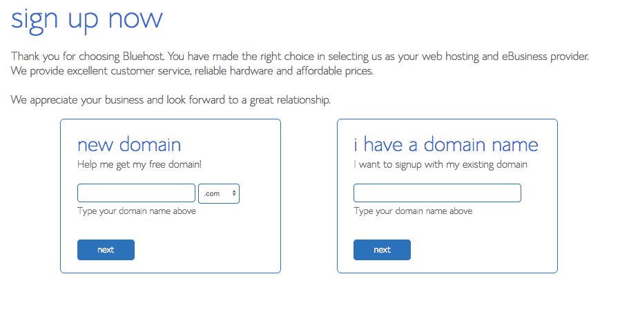 If you decided to get the free domain, just continue on to the next step so you can purchase both your hosting and domain package together!